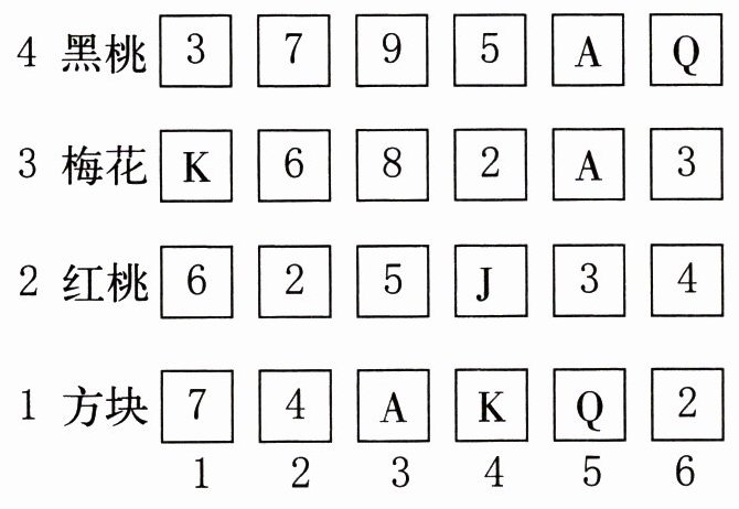 (1) 如果用(2,4)表示黑桃7的位置,则方块2的位置是(