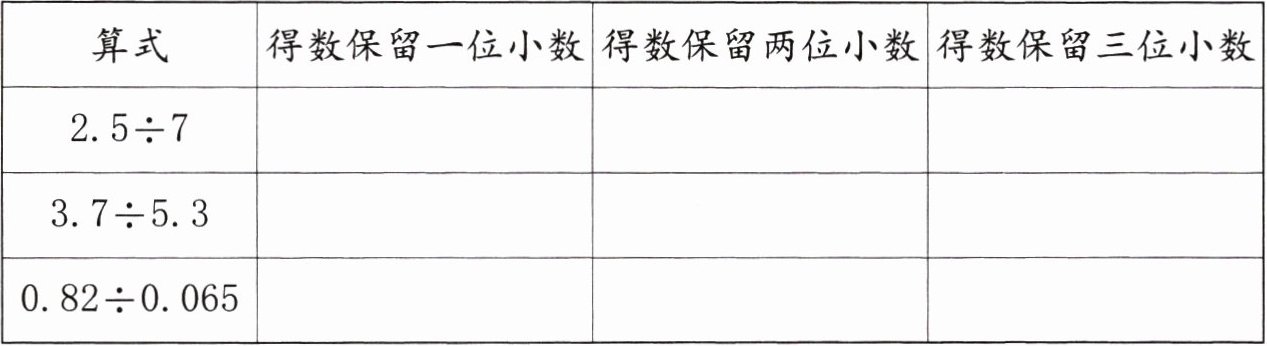 |算式|得数保留一位小数|得数保留两位小数|得数保留三位小数|
