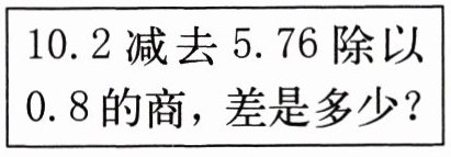 (1) $ 10.2 $ 减去 $ 5.76 $ 除以 $ 0.8 $ 的商,差是多少?