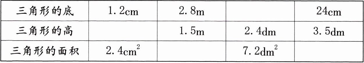 |三角形的高| |1.5m|2.4dm|3.5dm|