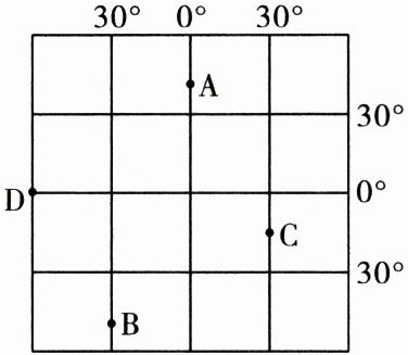 (3)A、B、C、D 四点中位于东半球的是:______,位于南半球的是______。