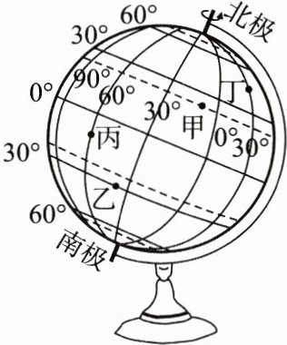 2. 在图示地球仪上,符合“东半球、中纬度”条件的点是( )。