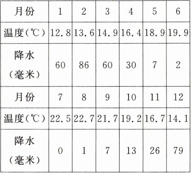 3. 气象观测得到的数据常用资料表来记录,它是绘制坐标图的基础。根据下面某地的气候资料,完成要求: