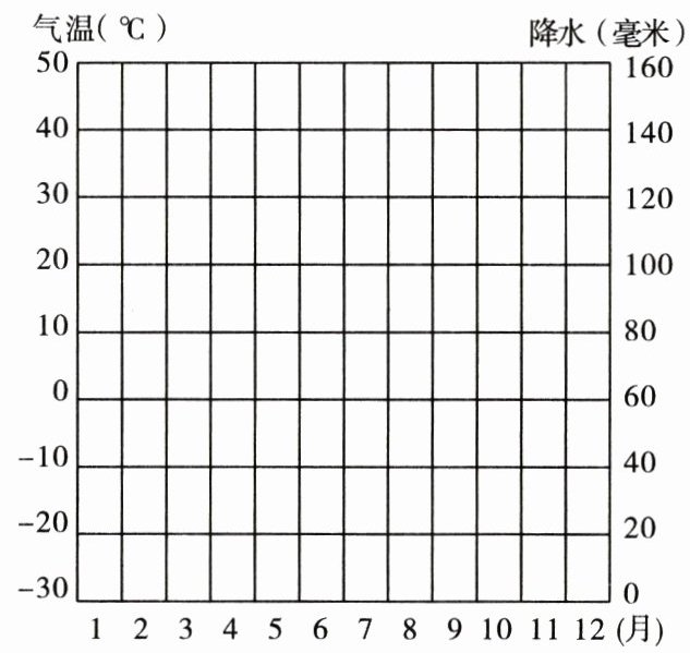 (1)在坐标网格中,绘出该地的气温变化曲线和逐月降水量图。