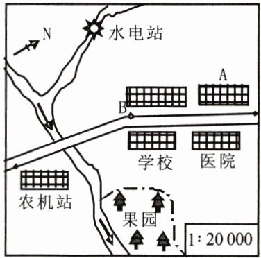 (3)水电站位于农机站的____方向。若水电站到农机站的图上距离为 4 厘米,则两地实际直线距离为____千米。若 A 点到 B 点的图上距离为 2.5 厘米,则两点间实际直线距离为____千米。