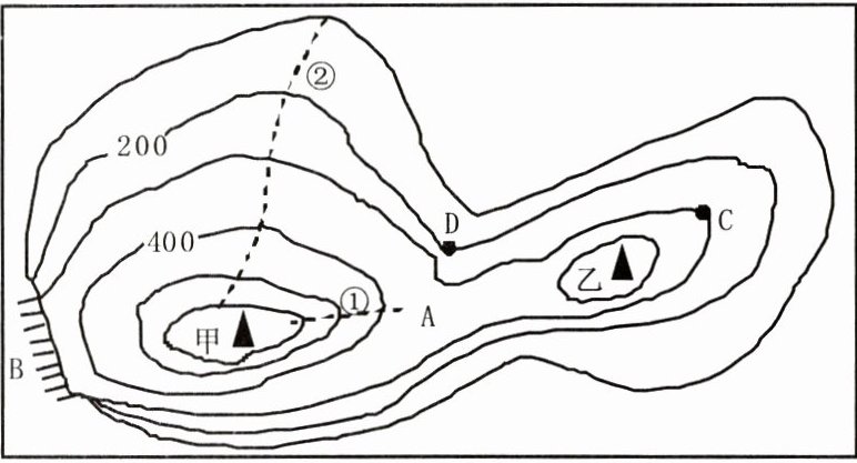 (2)图中①②两虚线代表的地形是____(填“山脊”或“山谷”),其中坡度较陡的是____处。