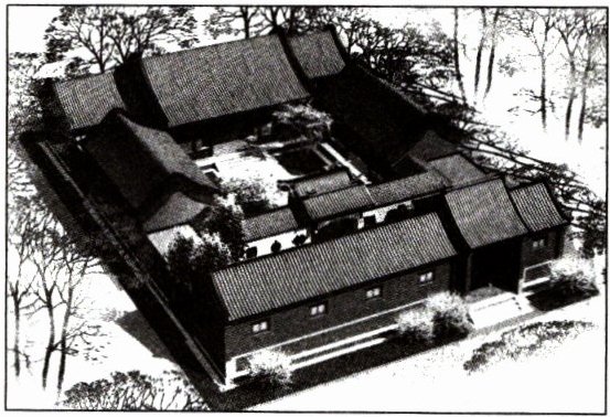 (1)图中民居的名称叫____,是我国北京地区民居建筑的代表。