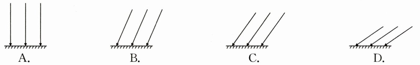 4. 下列四幅图中,地面获得阳光辐射最多的是( )。