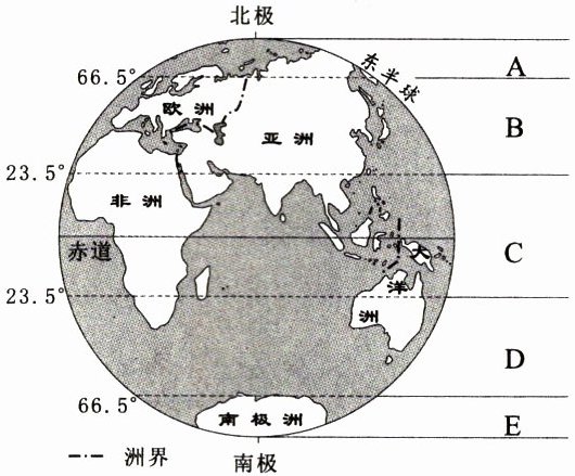 (2)一年中有两次太阳直射的温度带是____。(填字母)
