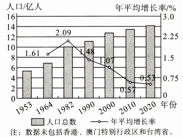 (1)从图中可以看出,中华人民共和国成立以来,我国人口( )。