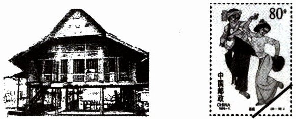 3. 我国是统一和谐的中华民族大家庭,各民族都有自己独特的文化特色。下图示意我国某少数民族及其传统民居。据此回答(1)~(2)题。
