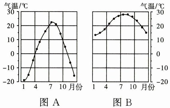 (3)7月份,两地气温均在______$^{\circ}C$以上,这反映我国夏季气温分布特点是______。