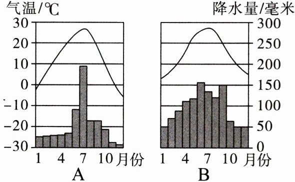 (1)图A中7月的平均气温约是______℃,降水量约是______毫米。