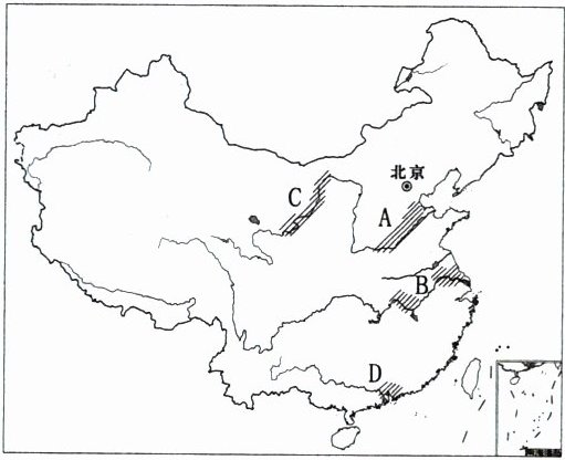 3. 热点题 下图所示的地区中,工农业发达,人口稠密,供水比较紧张的地区是( )。