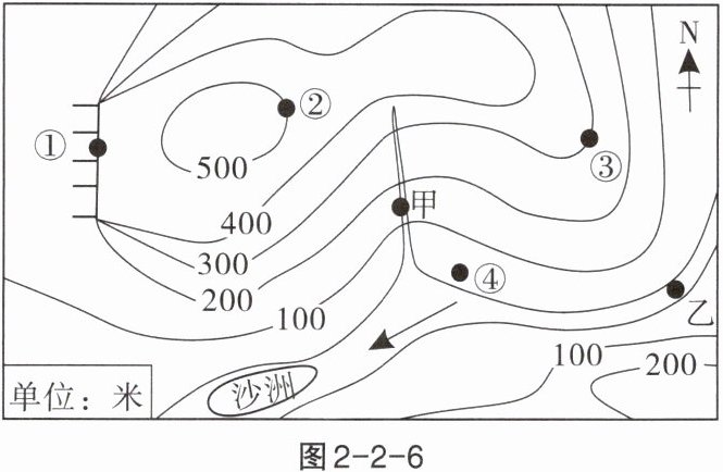 12. 某地区在“绿水青山就是金山银山”理念引领下,开展了大规模的退耕还林工程。图 2-2-6 为该地区等高线地形图,读图完成下列题目。