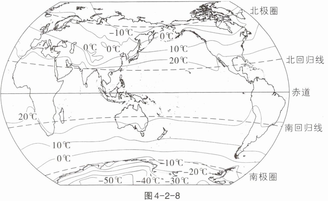 (2023·甘肃武威)读图 4 - 2 - 8“世界年平均气温分布图”,完成 3~4 题。