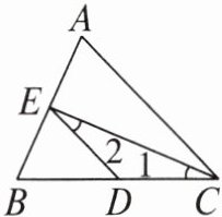 3. 如图,在△ABC中,CE平分∠ACB,∠1 = ∠2,若∠ACE = 23°,求∠EDC的度数。
