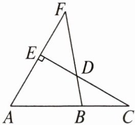 4. 如图,CE⊥AF,垂足为E,CE与BF相交于点D,∠F = 40°,∠C = 30°,求∠EDF和∠DBC的度数。