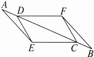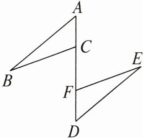 ∴AF-CF= DC-CF,即AC= DF。在△ABC和△DEF中,$\left\{\begin{array}{l} AC= DF,\\ AB= DE,\\ BC= EF,\end{array} \right. $