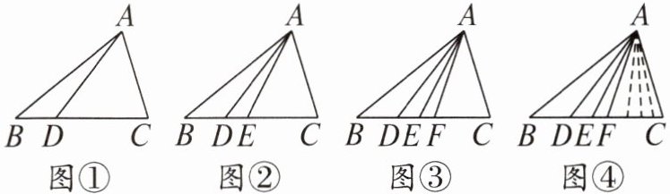(4)如图④,在边$BC上取n个点D,E,F,…$,连接$AD,AE,AF,…$,则图中共有多少个三角形?
