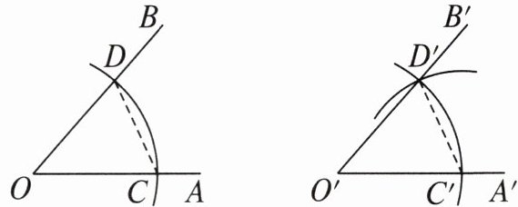 1. 用直尺和圆规作一个角等于已知角的示意图如下,要说明∠D'O'C'= ∠DOC,需要证明△D'O'C'≌△DOC,则这两个三角形全等的依据是(