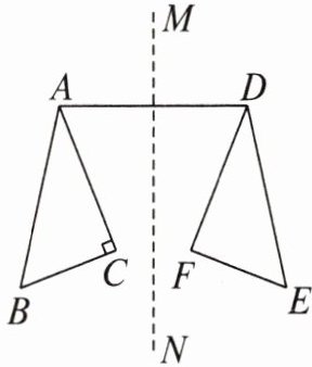4. 如图,ΔABC与ΔDEF关于直线MN对称,其中∠C= 90°,AC= 8cm,DE= 10cm,BC= 6cm.
