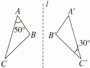 2. 如图,ΔABC与ΔA'B'C'关于直线l对称,则∠B的度数为