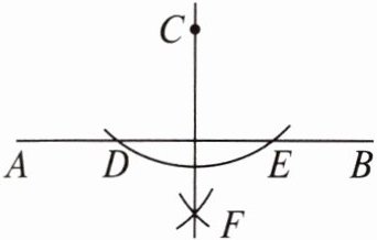 的长为半径作弧,两弧相交于点 $F$;(3)作直线 $CF$。直线 $CF$ 就是所求作的垂线。
