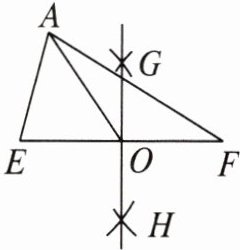 举一反三 如图,在 $\triangle AEF$ 中,利用直尺和圆规作图如下:分别以点 $E$ 和点 $F$ 为圆心,大于 $\frac{1}{2}EF$ 的长为半径作弧,两弧相交于 $G$,$H$ 两点,作直线 $GH$,交 $EF$ 于点 $O$,连接 $AO$,则线段 $AO$ 为三角形的(