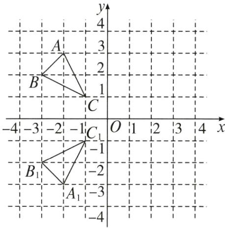 (1)如图,$\triangle A_{1}B_{1}C_{1}$即为所求,$A_{1}(-2,-3)$,$B_{1}(-3,-2),C_{1}(-1,-1).$