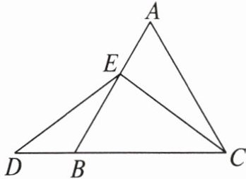 7. 如图,在等边三角形 ABC 中,点 E 在边 AB 上,点 D 在 CB 的延长线上,且 ED= EC,试确定线段 AE 与 DB 的大小关系,并说明理由。