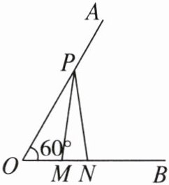 6. 如图,已知 $\angle O = 60^{\circ}$,点 $P$ 在边 $OA$ 上,$OP = 8$,点 $M$,$N$ 在边 $OB$ 上,$PM = PN$,若 $MN = 2$,求 $ON$ 的长。