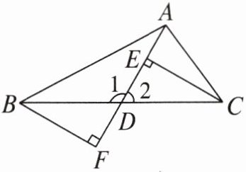 3. 如图,已知 $AD$ 是 $\triangle ABC$ 的中线,$\angle 1 = 2\angle 2$,$CE\perp AD$ 于点 $E$,$BF\perp AD$,交 $AD$ 的延长线于点 $F$。若 $EF = 6$,则 $BC = $