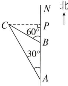 ∴从海岛B到灯塔C的距离为30海里.(2)如图,过点C作CP⊥AN于点P,故小船在点P处与灯塔C的距离最短.