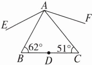 典例 2 如图,在$\triangle ABC$中,点$D在BC$上,点$D关于AB$,$AC对称的对称点分别为点E$,$F$,连接$AE$,$AF$,则$\angle EAF$的度数是(