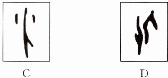 典例 1 甲骨文是中国的一种古代文字。如图,在甲骨文对照表中取了四个字,若把这四个甲骨文的文字抽象为几何图形,其中最接近轴对称图形的是(