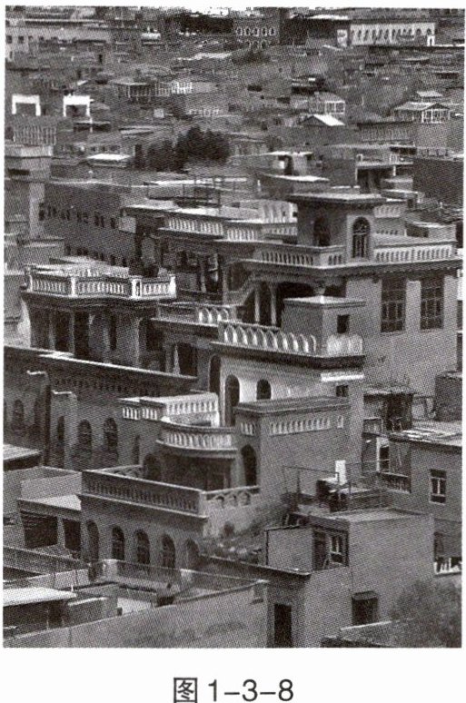 (2024·四川成都·有改动)2024年春晚新疆喀什分会场选用新疆传统民居屋顶作为舞台,以歌舞等形式展示了绚丽的民族风情与文化特色。图1-3-8为新疆传统民居。据此完成1~2题。
