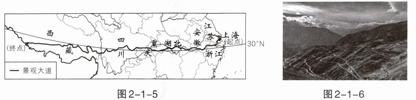 东起上海西至西藏樟木的 318 国道,被称为“中国人的景观大道”(图 2 - 1 - 5)。据此完成 10 ~ 11 题。