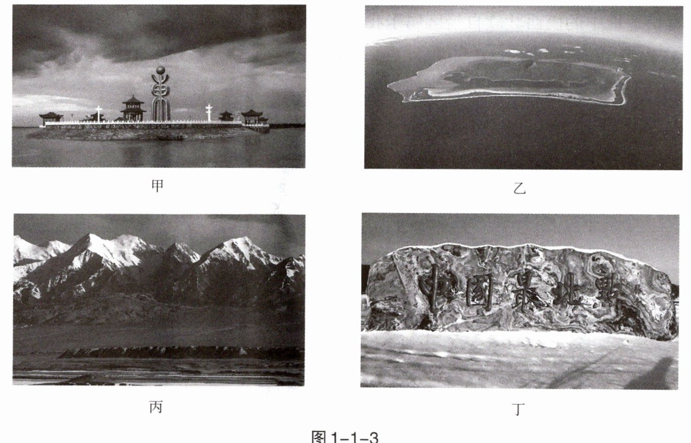 我国的疆域辽阔,南北大致从 4°N 到 54°N,西东大致从 73°E 到 135°E。读图 1 - 1 - 3“我国四至点附近的景观图”,完成 7~8 题。