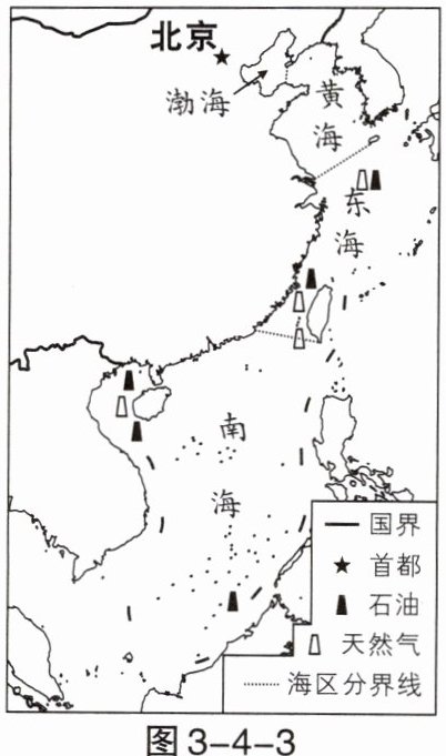 “向海而兴,开海而盛”,海洋是我国实现可持续发展的重要战略空间与资源保障。开发、利用和保护海洋,建设海洋强国,是国家的重要发展战略。读图 3-4-3“我国近海海区分布”,完成 8~9 题。