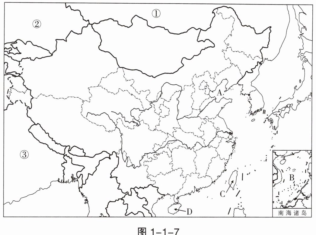 (1)写出图中序号①②③代表的邻国名称。
