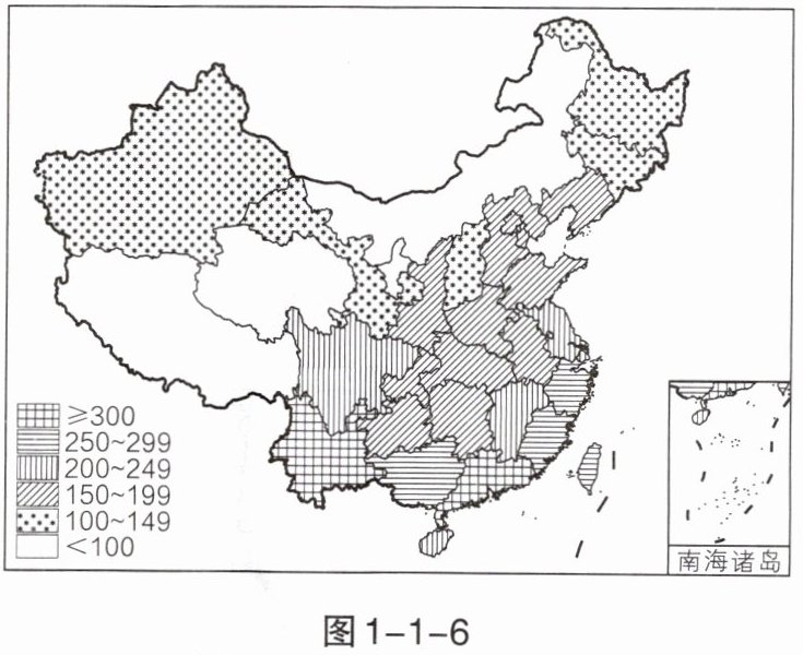 近年来,我国外来物种种数大增,有些物种在新环境中急剧繁殖扩散,严重危害当地的生物多样性、农林牧渔业生产以及人类健康,成为外来入侵物种。图 1 - 1 - 6 为我国各省级行政区外来入侵物种数分布图(单位:个)。读图,完成 14~15 题。