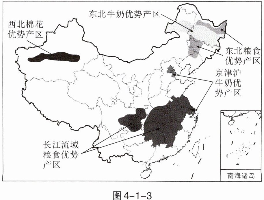 图 4 - 1 - 3 为我国部分农产品优势产区布局示意图,据此完成 6~7 题。