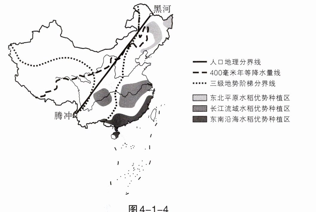 水稻是我国重要的粮食作物,读图 4 - 1 - 4“我国水稻优势种植区分布图”,完成 8~10 题。