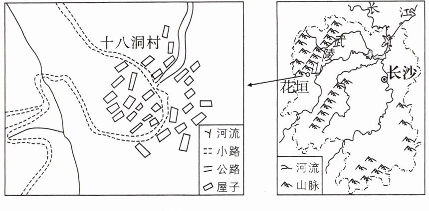 湖南省湘西土家族苗族自治州花垣县的十八洞村,地处武陵山区,四周重重大山环绕,交通极为闭塞,过去村民生活贫困。后来,一条连接十八洞村和高速公路的农村公路建成通车,村子的面貌从此焕然一新。读图 4 - 3 - 2“十八洞村位置示意图”,完成 3~5 题。