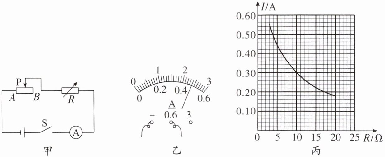(1)小明在实验前发现还缺少一个实验器材,请将所缺器材的电路元件符号正确连入图甲所示的电路中。实验时,先将电阻箱的阻值调为5Ω,然后将滑片P调至______(选填“A”或“B”)端,闭合开关,再调节滑片P至某一位置,电流表示数如图乙所示,读数为______A。断开开关,将电阻箱的阻值调为10Ω,再闭合开关,______(选填“能”或“不能”)立即记录电流表的示数。