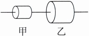 6. 由不同材料制成的金属棒甲和乙,长度相同,横截面积不同,两者按照如图所示的方式连在一起后接在电源两端。如果此时金属棒甲和乙两端的电压相等,那么两金属棒的电阻大小关系为$R_{甲}$
