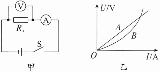 3. 实验小组设计了如图甲所示的电路来测量电阻器的阻值$R_x$,小富提出,这样只能得到一组数据,测量误差可能较大。为了减小误差,需要多次测量,应该在电路中串联一个