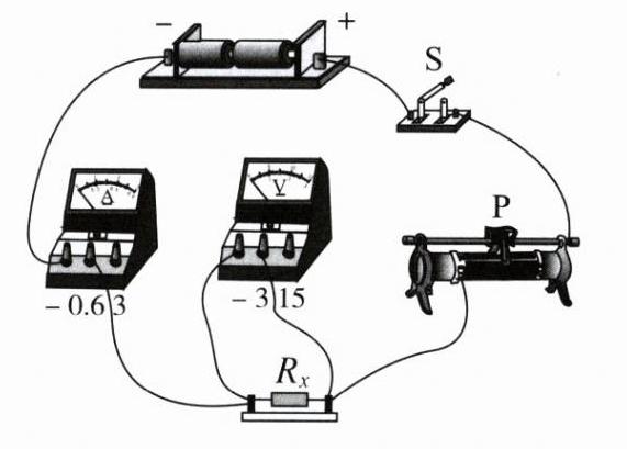(3) 排除故障后,当滑片移到某一位置时,电压表示数为 $ 1.6 \, V $,电流表示数如图乙所示,其读数为______ $ A $,则未知电阻的阻值 $ R_x = $______ $ \Omega $。接下来测量多组实验数据算出 $ R_x $ 的平均值,这是为了减小______。