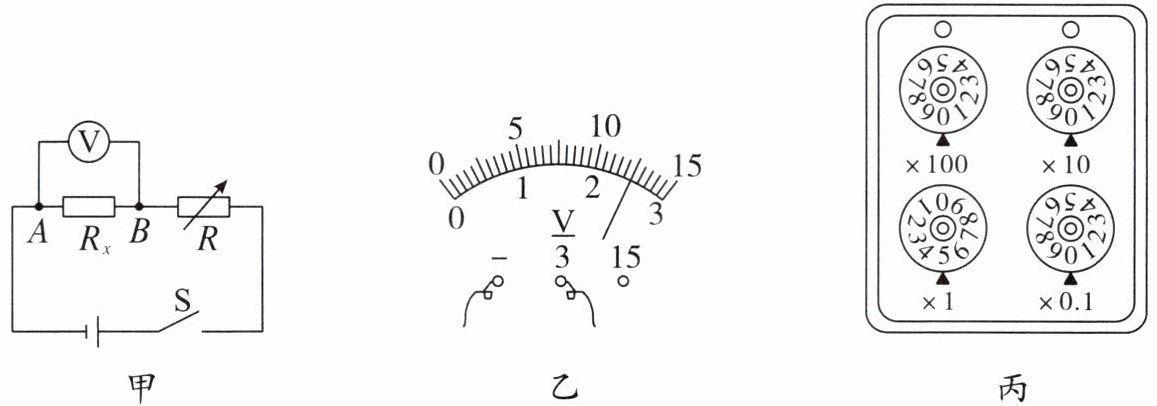 $ V $;此时,电阻箱示数如图丙所示,则电阻箱接入电路的阻值为______5
